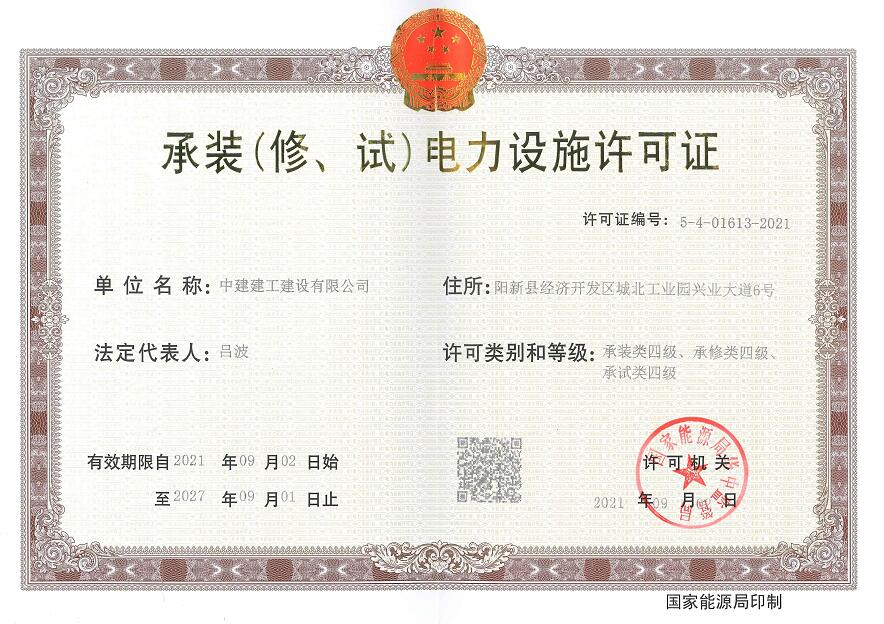 承裝(修、試)電力設施許可證