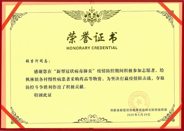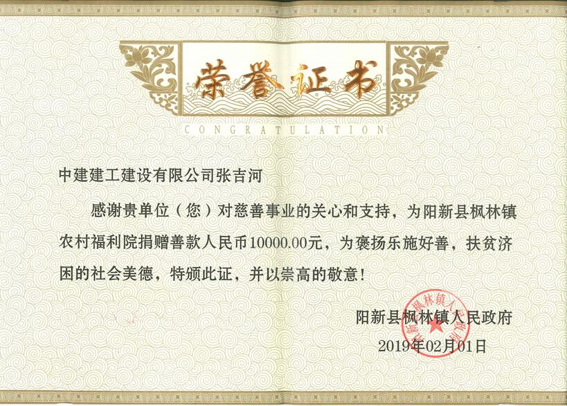 陽新縣楓林鎮農村福利院捐贈榮譽...