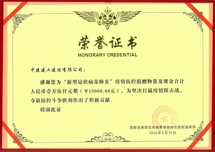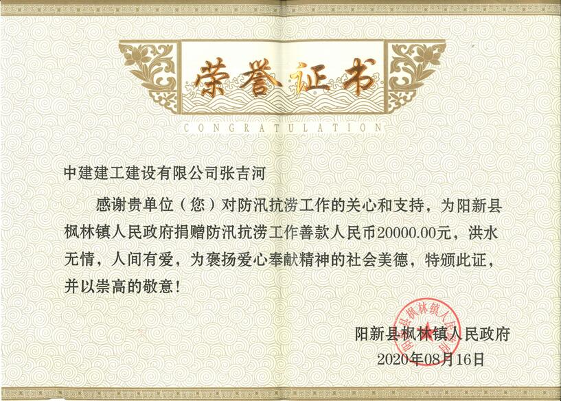 陽新縣捐贈防汛抗澇工作捐贈榮譽...